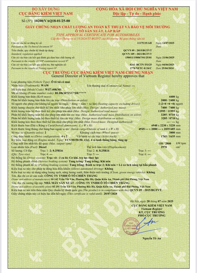 Ôtô Tải (có mui) – WZ7.40KM1